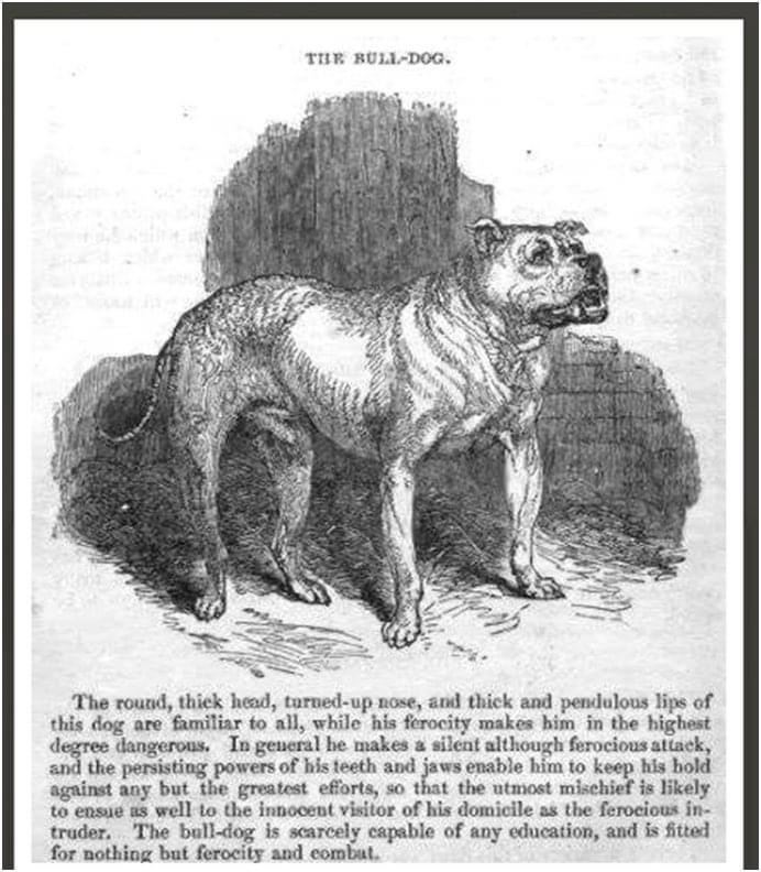 When debates were first heard at the turn of the 18th century on whether to make bull baiting illegal or not in England’s parliament, a group of visionary dog breeders began an effort to save the legendary symbol of British courage, the primordial English Bulldog. This group would eventually be called the Philo-Kuon breeders. Parliamentary debates continued for three and a half decades, during that time the British newspapers crucified the Bulldog, painting a caricature “monster dog”, image similar to the current media campaign against the Pit Bull.
